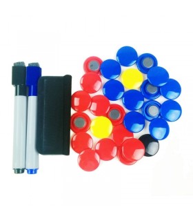 27 magnets Ø20 mm for tactical boards. Includes 12 magnets from one team, 12 from another, 2 goalkeepers and a referee. Ø20 mm