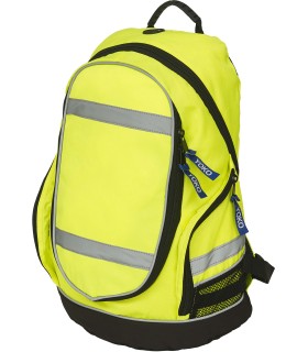 23 L. 100% waterproof 600D polyester. Reflective strips on three sides. Webbed carrying handle. Adjustable padded shoulder straps. 2 side mesh pockets and 1 front expandable pocket. 1 internal pocket with earphone...