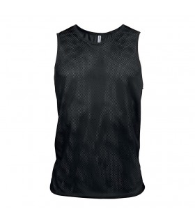 90 gsm 100% polyesterMesh knit. Twin needle finishing at the hem.