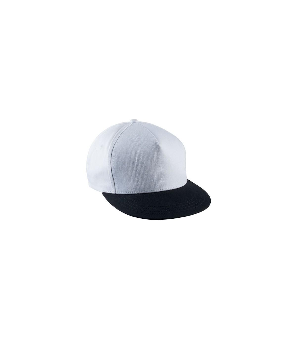 260gcm. 100% cotton twill. 5 panels. Flat peak. Adjustable plastic tab closure