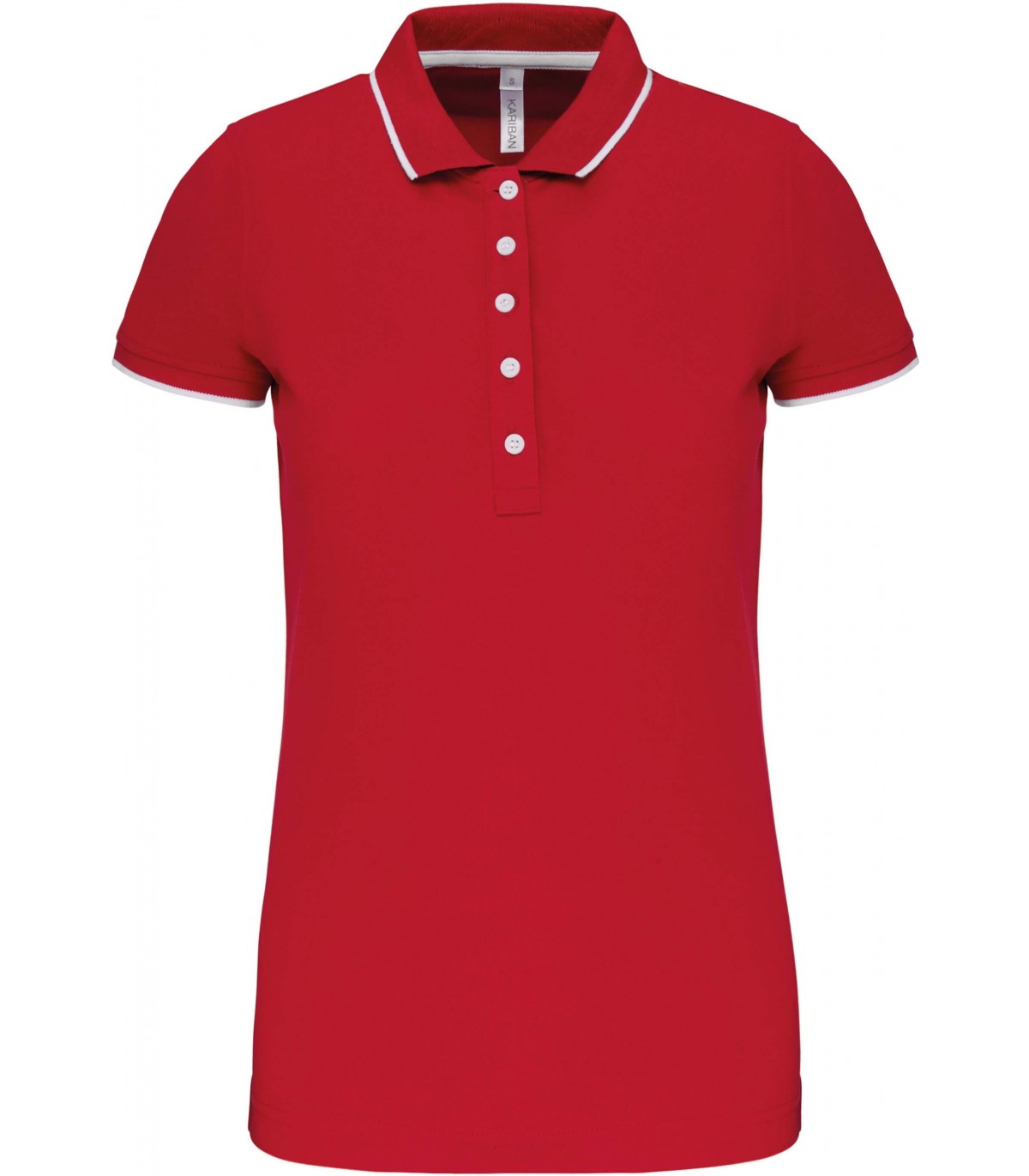 Ladies' short-sleeved piqué knit polo shirt red - navy