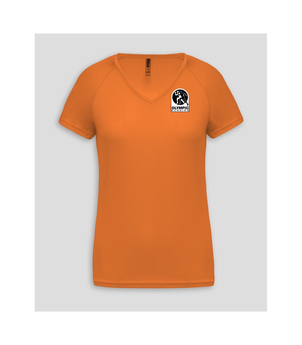 Running Ladies VNeck T-Shirt + Logo or Name - PABE477