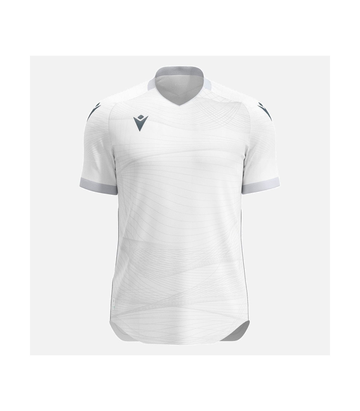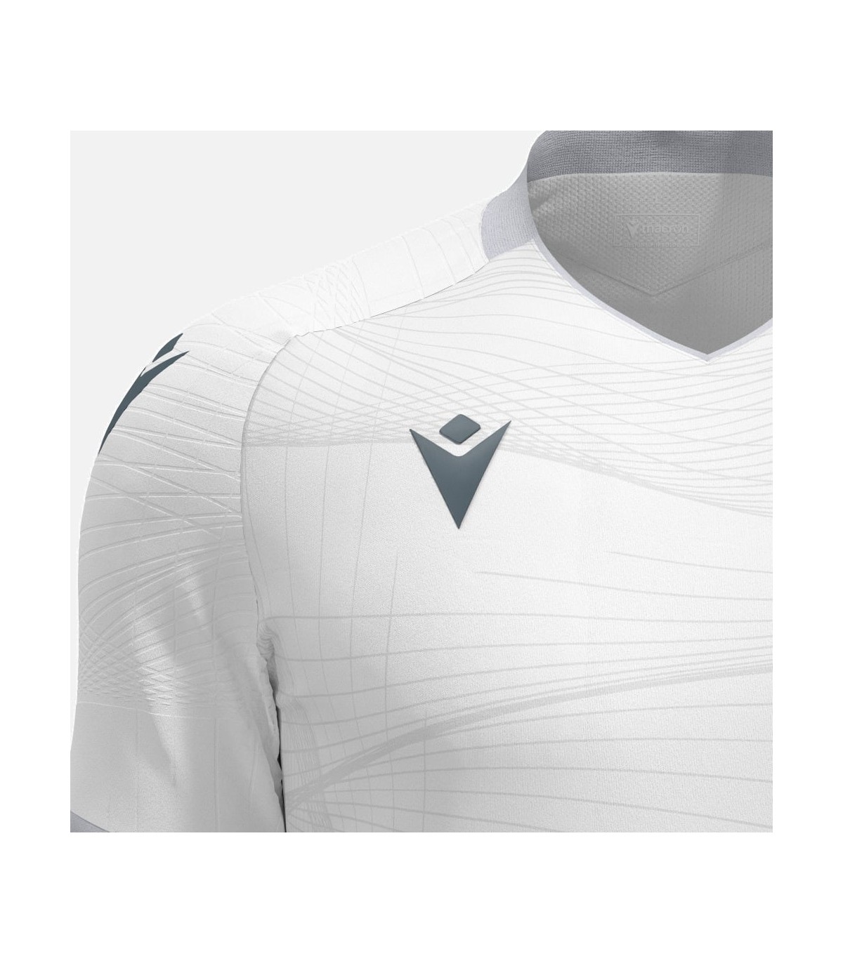 Match day shirt made entirely in Eco-Fabric, obtained from 100% recycled PET. The knitted V-neck has piping on the front. The shirt features a distinctive optical texture which is embossed on the sleeves and dye-sub printed on the front. The Macron Hero logo stands in silicone on front. The Eco-micromesh back guarantees outstanding breathability. Available in 14 colour versions.