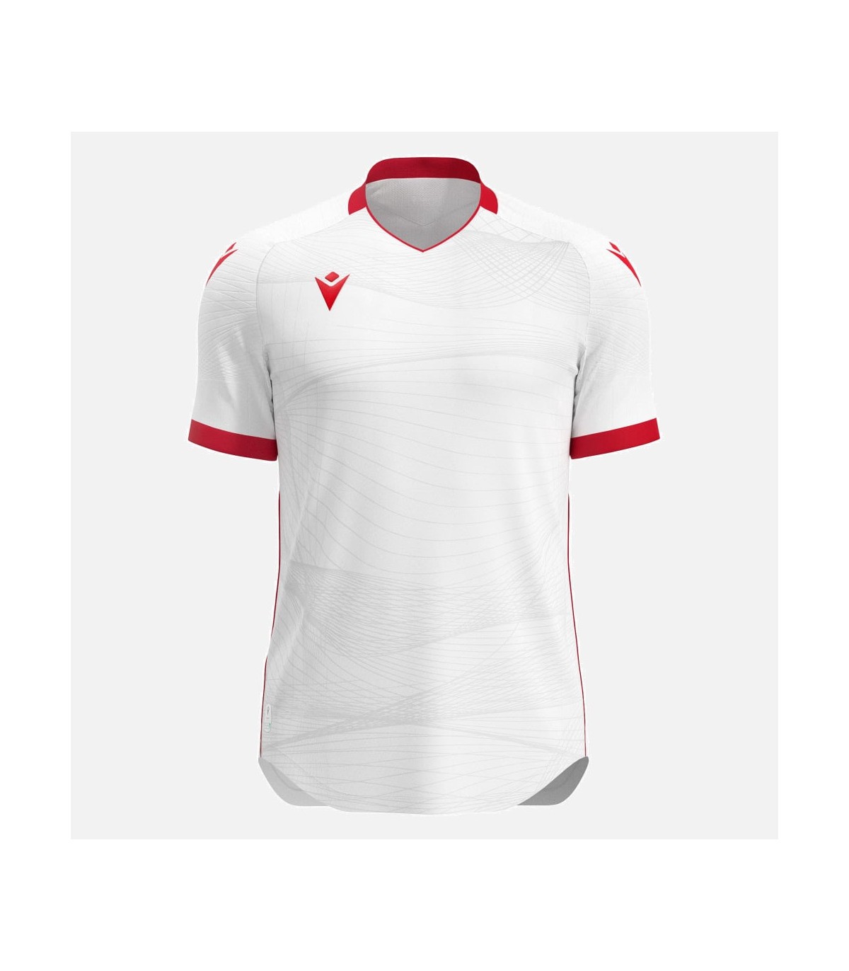 Match day shirt made entirely in Eco-Fabric, obtained from 100% recycled PET. The knitted V-neck has piping on the front. The shirt features a distinctive optical texture which is embossed on the sleeves and dye-sub printed on the front. The Macron Hero logo stands in silicone on front. The Eco-micromesh back guarantees outstanding breathability. Available in 14 colour versions.