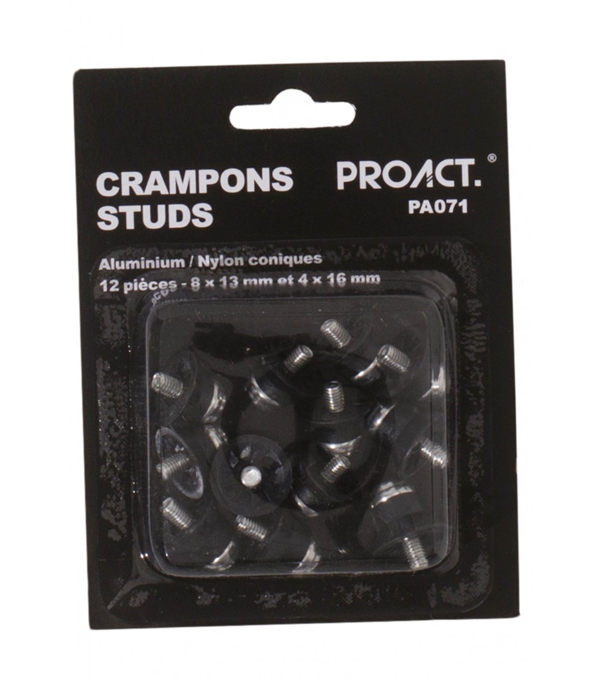 12 conical aluminium / nylon studs. 8x13mm and 4x16 cm