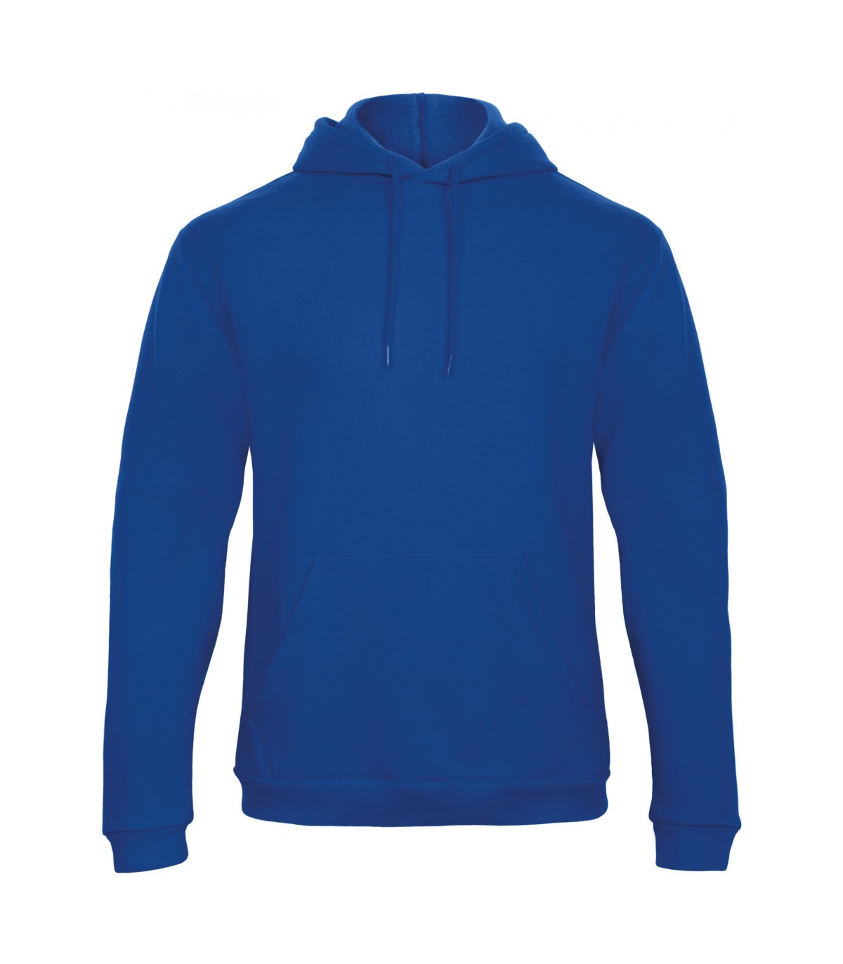 50% cotton/50% polyester. Fleece inside. Bottom hem and cuffs with 1x1 elastane rib. Straddle stitched seams on armhole and neckline. Kangaroo pocket. Two panels hood with tone-on-tone tubular drawcord. Set-in sleeves. Side seams. Unisex