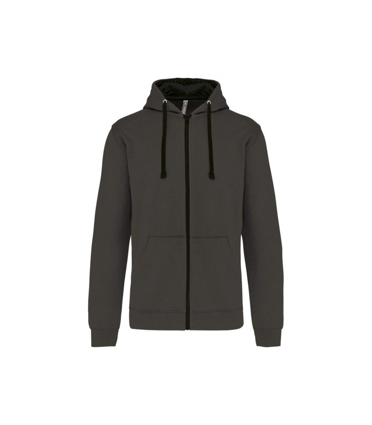 280gr/m².- 80% combed cotton/20% polyester (Oxford Grey : 76% combed cotton / 21% polyester / 3% viscose). Brushed fleece. Kangaroo pocket with earphone access. Ribbed cuffs and hem. Lined, contrasting hood with drawstring. Contrast zip fastening.