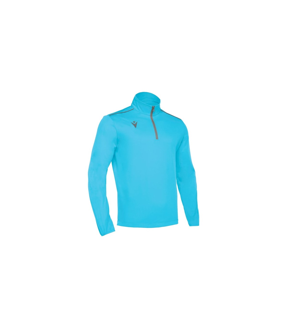 The Havel training shirt is entirely made from poly dry fabric. The bottom of the shirt has a straight line that ends in a drawstring so you can adjust the tightness. The reversed zip on the neck, with its lycra-hemmed wrist and piping detail on the shoulders, complete the look of this shirt while making it extremely practical.