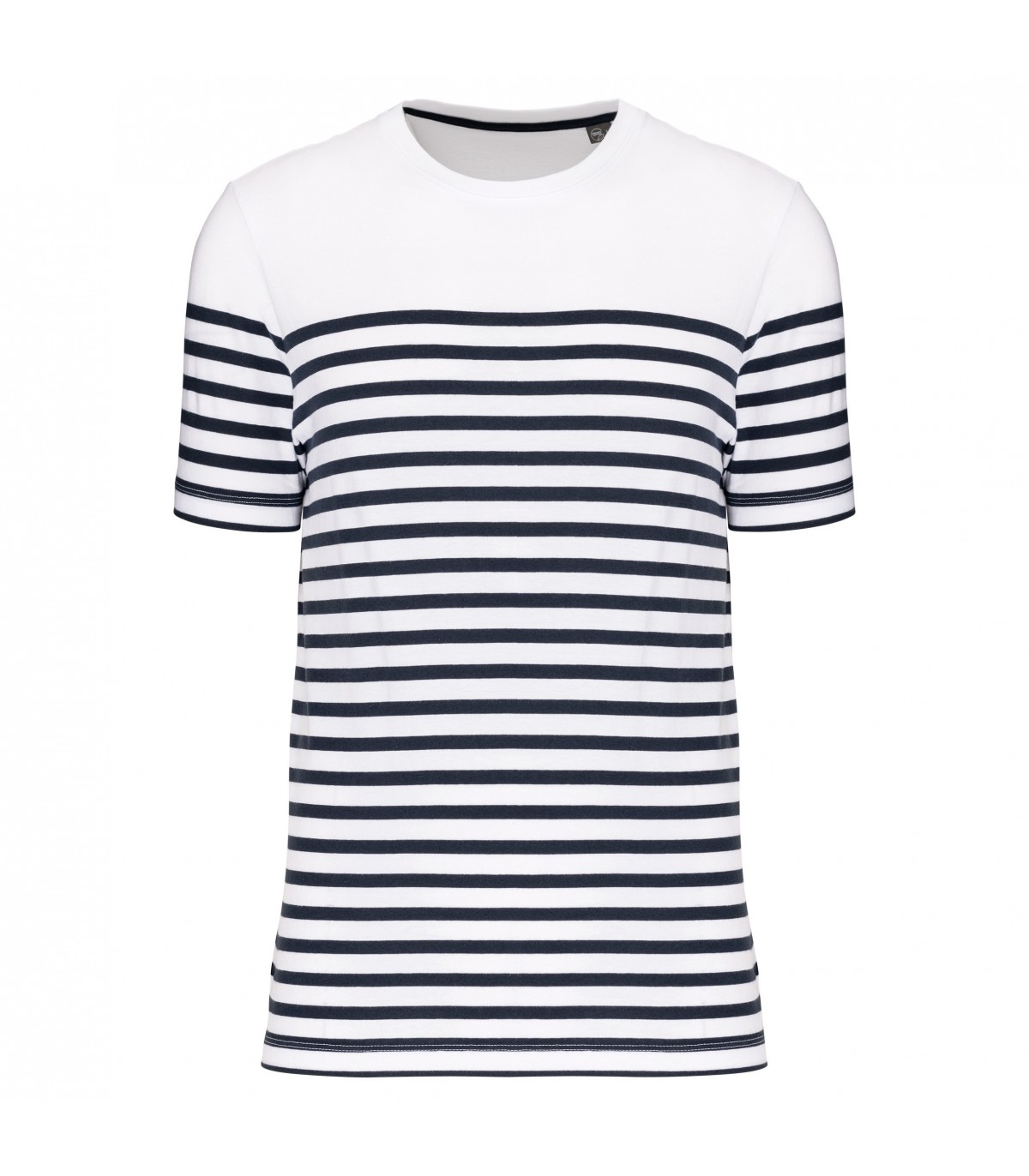 100% cotton. This T-shirt is made from 100% organic combed cotton. The GOTS (Global Organic Textile Standard) certificate is issued by Ecocert Greenlife. Straight fit. Soft fabric. Ribbed crew neckline. Knitted stripes. Taped neck. Twin needle finish at cuffs and hem. No brand label at neck, size tab only for ease of rebranding. Certified STANDARD 100 by OEKO-TEX® N° CQ 1007/7, IFTH