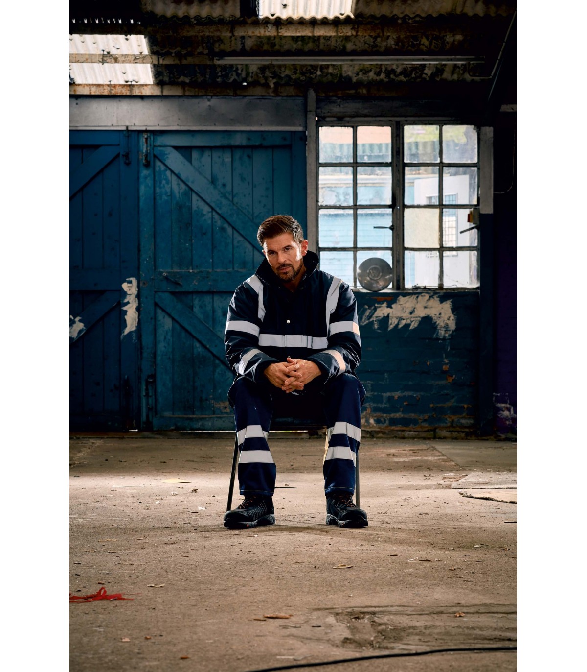 100% nylon. 420D PU coated nylon outer fabric with 190 g quilted padding and nylon lining. Waterproof and windproof. Heavy duty zip with studded storm flap. 2 outer pockets with over flaps. Elasticated knitted storm cuffs in the sleeve ends. Step collar with a concealed integral hood. Inside chest pocket. Throughout stitched and taped seams to ensure waterproof performance.