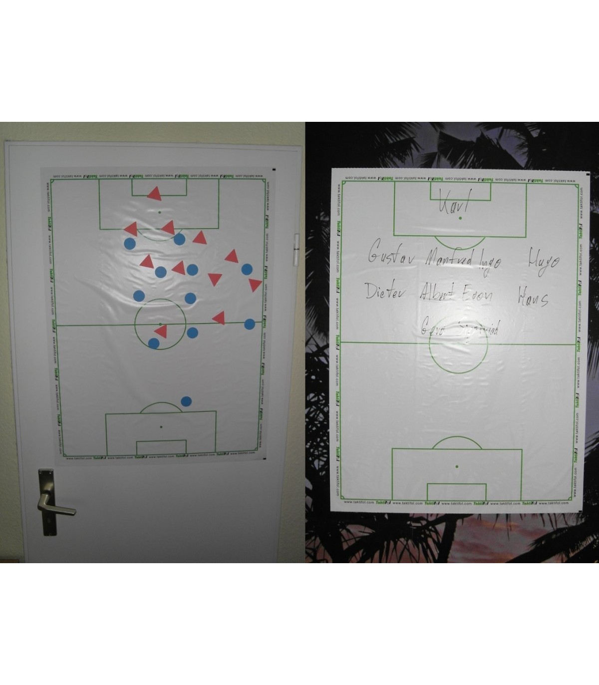 FR: Rouleau taktifol ! Ideal pour les entraineurs- se colle sur tout support ! Avec terrain de foot imprime La specificite de taktifol est son verso. Il est charge statiquement et tient pratiquement sur tous les supports. Sur un rouleau de 20 m vous trouverez 25 feuilles de 80 cm de long et 60cm de large. Les feuilles sont predecoupees et donc facilement detachables.
