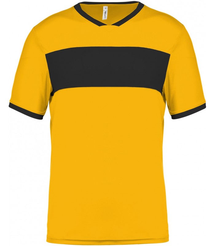 Empiècements poitrine, col et bas de manches contrastés.