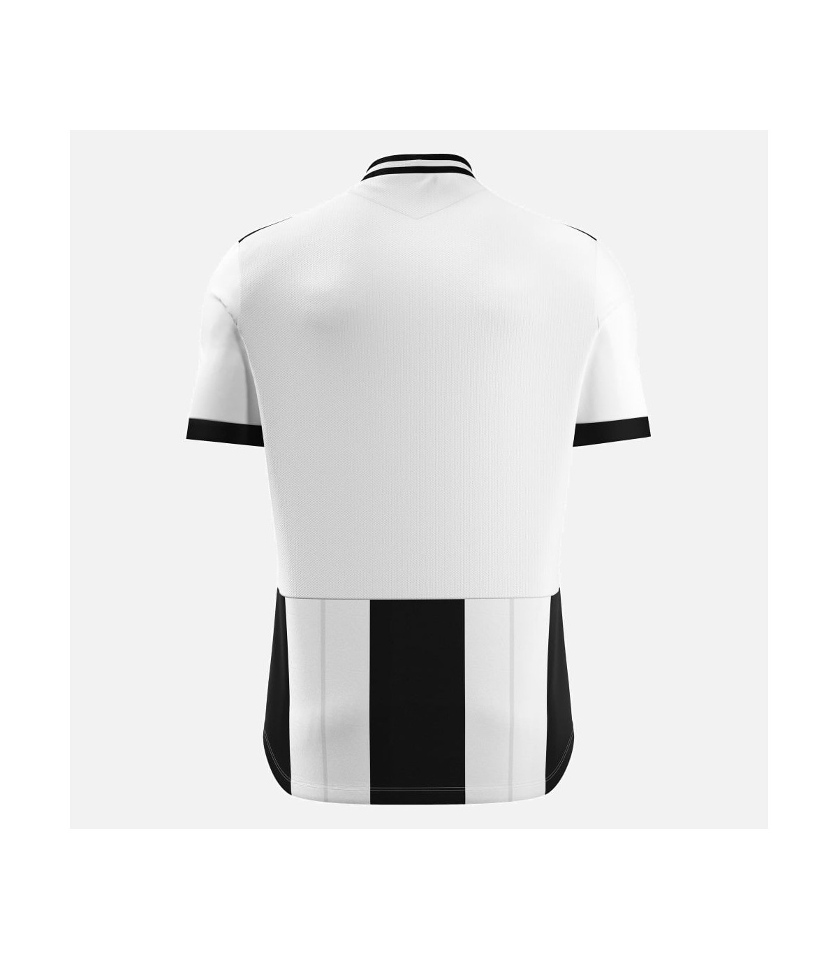 Maillot de match à cinq bandes verticales entièrement réalisé en tissu Eco-Fabric, 100 % issu de PET recyclé. Le col rond est en tricot. Dans le dos, les bandes sont interrompues pour permettre l'impression des noms et des numéros et garantir leur bonne visibilité. Le devant comporte le logo Macron Hero en silicone et le dos est en Eco micromesh pour permettre une respirabilité maximale. Disponible en 8 coloris.