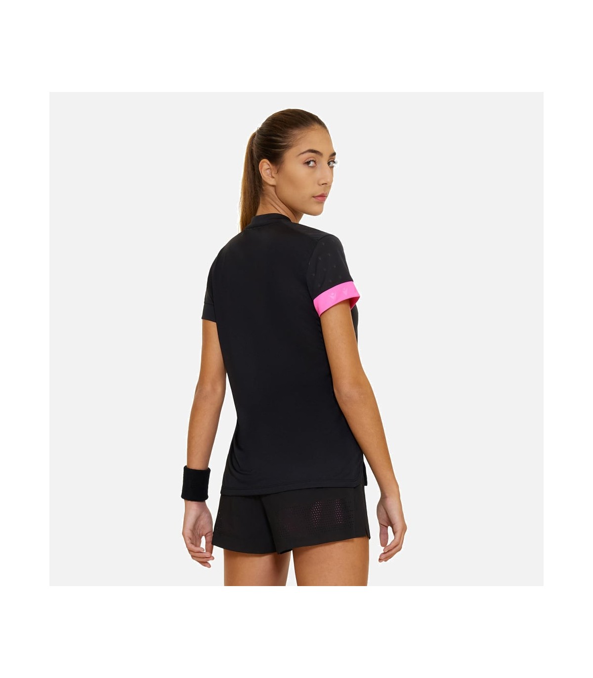 Quand le match est difficile et que vous devez vous concentrer au maximum, le polo col Mao Livia est un allié parfait. Le tissu principal Zéphyr, extrêmement léger, et le tissu en mesh dans le dos garantissent une sensation de fraîcheur et une respirabilité excellentes pendant tout le match. En effet, confort et respirabilité sont fondamentaux pour tous les joueurs de padel. Sur le côté du maillot, une ouverture découpée au laser avec liseré permet une meilleure aération. Concernant le style, le dessin en relief ressort sur la partie haute et sur les manches.