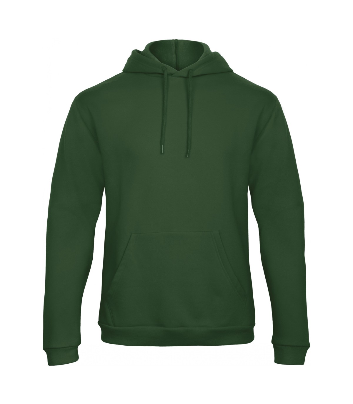 50% coton / 50% polyester. Molleton gratté. Bord inférieur et poignets en côte élasthanne 1x1. Double surpiqûres à cheval au niveau des emmanchures. Poche kangourou. Capuche à deux pans avec cordon ton sur ton en forme de tube. Manches montées. Coutures latérales. Modèle unisexe.