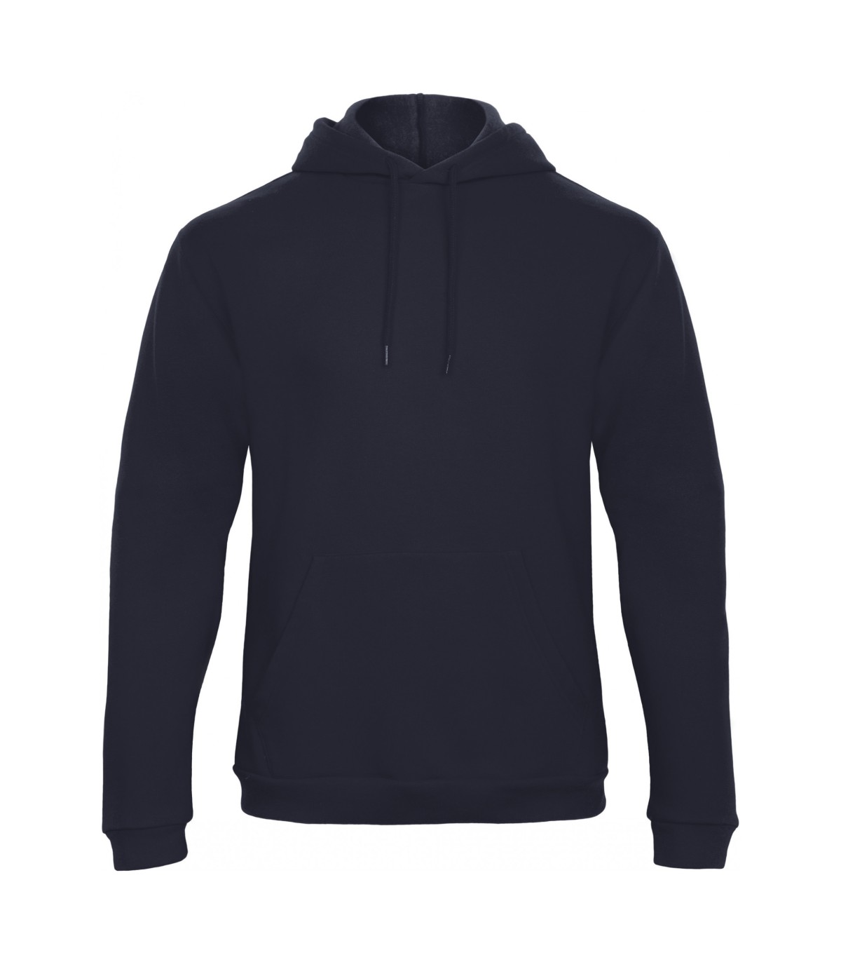 50% coton / 50% polyester. Molleton gratté. Bord inférieur et poignets en côte élasthanne 1x1. Double surpiqûres à cheval au niveau des emmanchures. Poche kangourou. Capuche à deux pans avec cordon ton sur ton en forme de tube. Manches montées. Coutures latérales. Modèle unisexe.