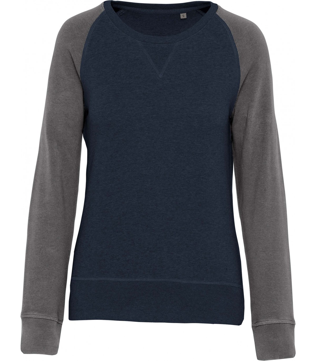Sweat-shirt Bio col rond manches raglan femme navy-gris