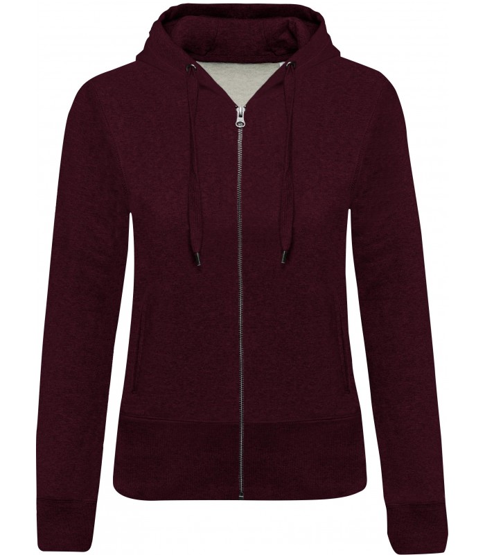 Sweat-shirt Bio zippé capuche femme bordeaux chiné