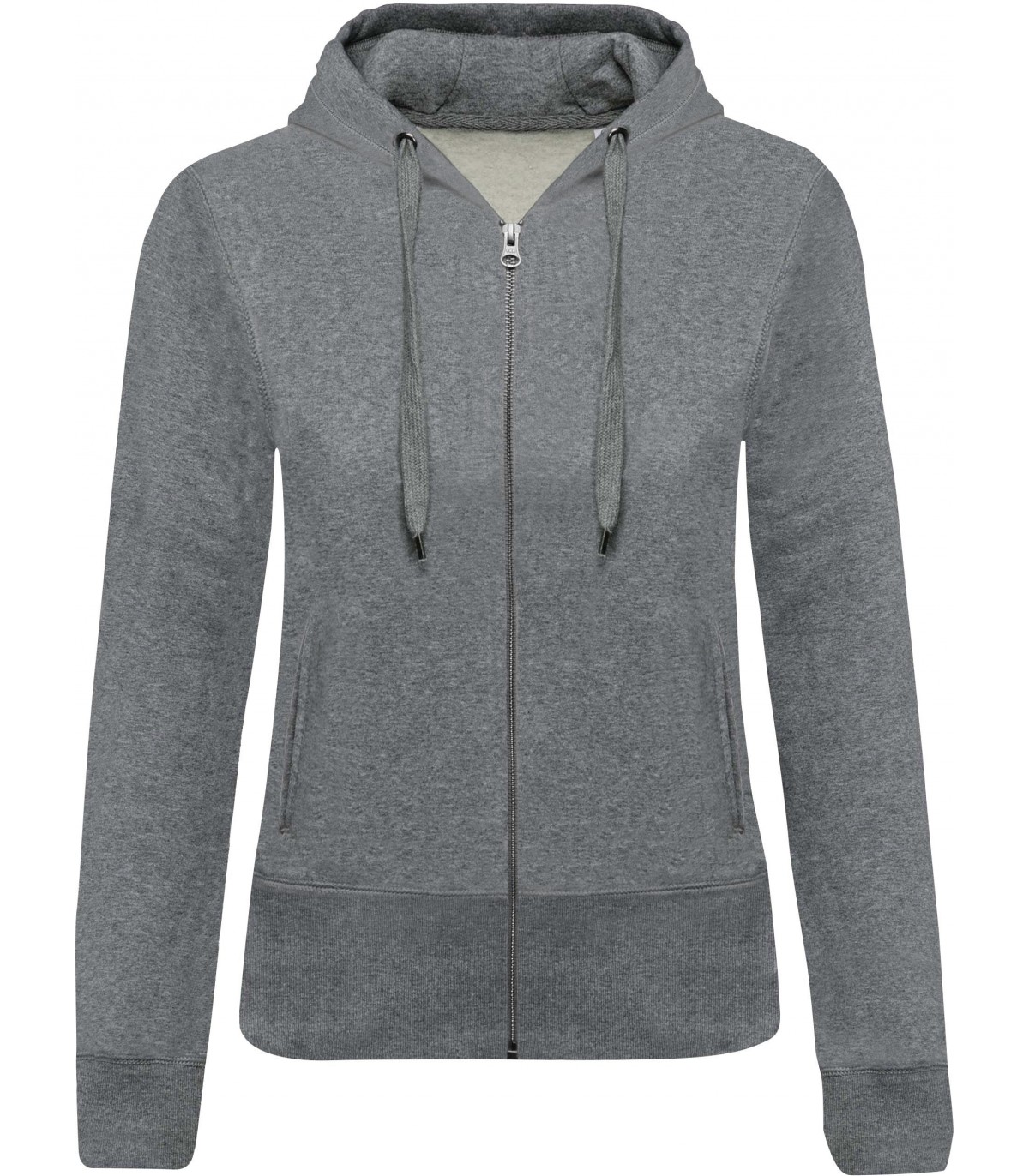 Sweat-shirt Bio zippé capuche femme gris chiné