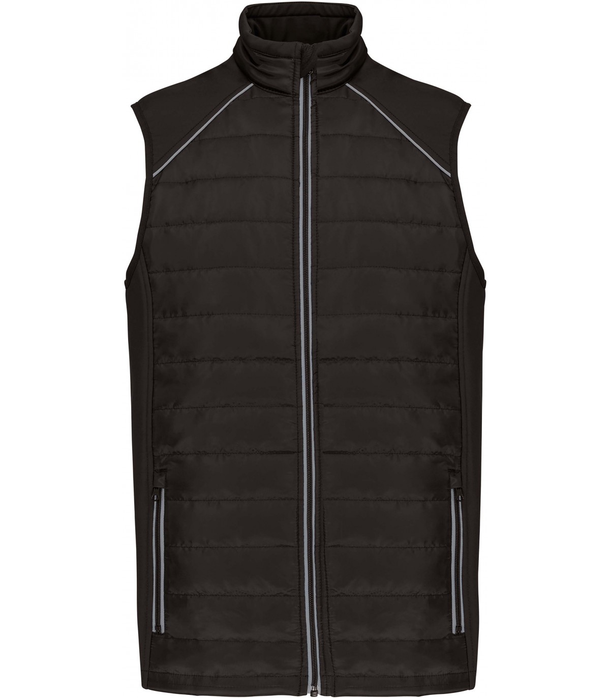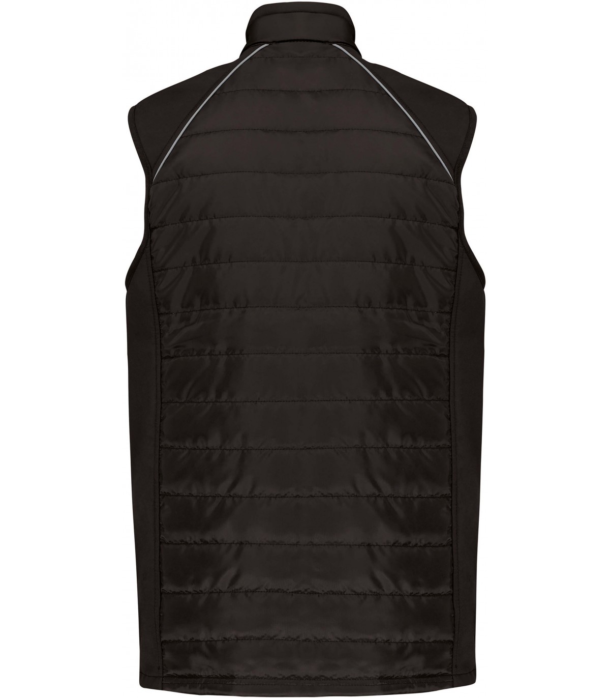 100 % polyester. Softshell 2 couches, tissu extensible dans les 4 sens pour plus d'aisance avec couche intérieure polaire pour plus de chaleur sur les côtés et les épaules. Devant et dos : 100 % polyester 75 g taffetas 230T avec enduction. Tissu traité déperlant. 2 poches avant zippées. 1 poche zippée intérieure côté droit. 1 étiquette nom fixée intérieur gauche. Passepoil contrasté aux emmanchures sur la couture raglan et intérieur du col. Fermeture zippée avant et poches contrastées. Zip invisible de personnalisation au bas de vêtement. Ideal pour une utilisation quotidienne.