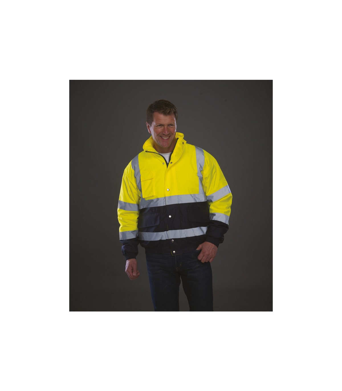 100% polyester. Revêtement Oxford PU imperméable 300D. Rembourrage matelassé en polyester de 190 g/m². Doublure en nylon. Zip ultra-résistant à l'avant avec rabat tempête doté de boutons pressions. Élastique Navy aux poignets et à la taille. 2 poches extérieures avec rabats tempête. Poche plaquée intérieure. Capuche avec cordons de serrage intégrée dans le col. Coutures cousues et collées pour une étanchéité parfaite. Conforme aux normes EN ISO471:2013 catégorie 3 et EN343 relative à la protection contre le mauvais temps.