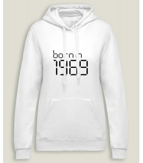 CapuchonSweatshirt VrouwRonde kraag80% Katoen / 20% Polyester280gSlogan : Born In... 1969>2018