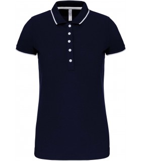 100% katoen piqué. Kraag in rib met bies in contrastkleur aan de boven- en onderkant (behalve White geen contrast onder de kraag). Nektape en zijsplitjes in contrastkleur. Fantasie knooplijst met 5 knopen....