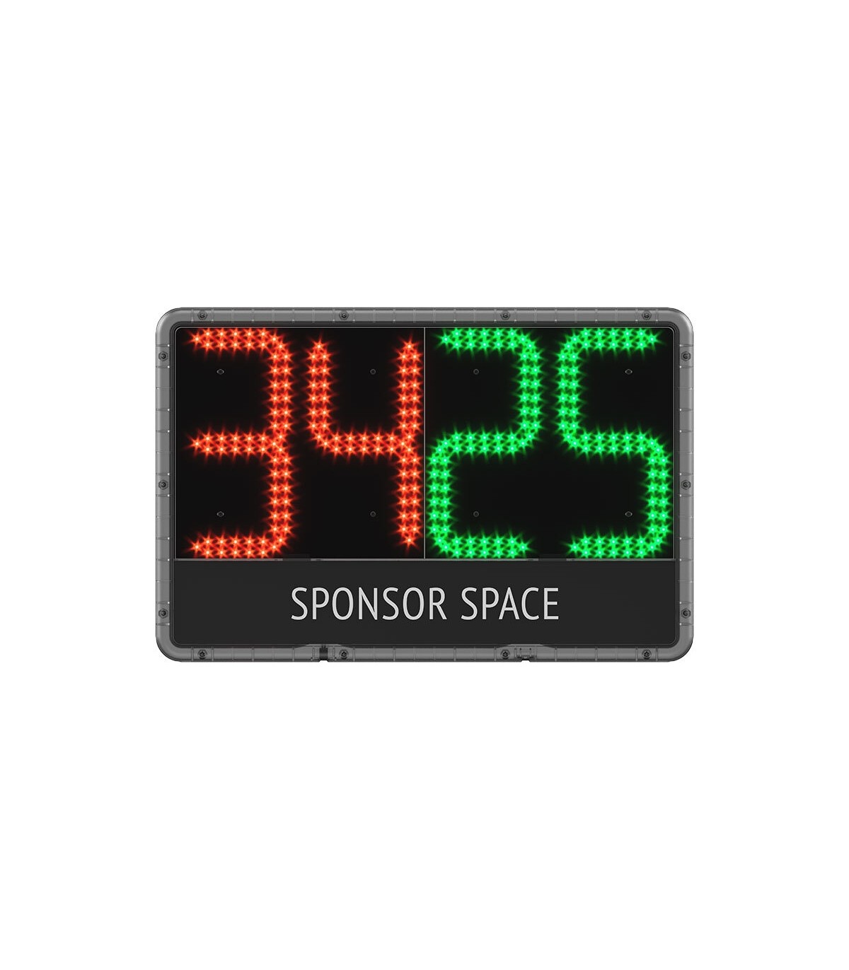 • Hoge helderheid LED's voor gebruik buitenshuis: rood voor de speler die het speelveld verlaat en groen voor de speler die het veld betreedt.