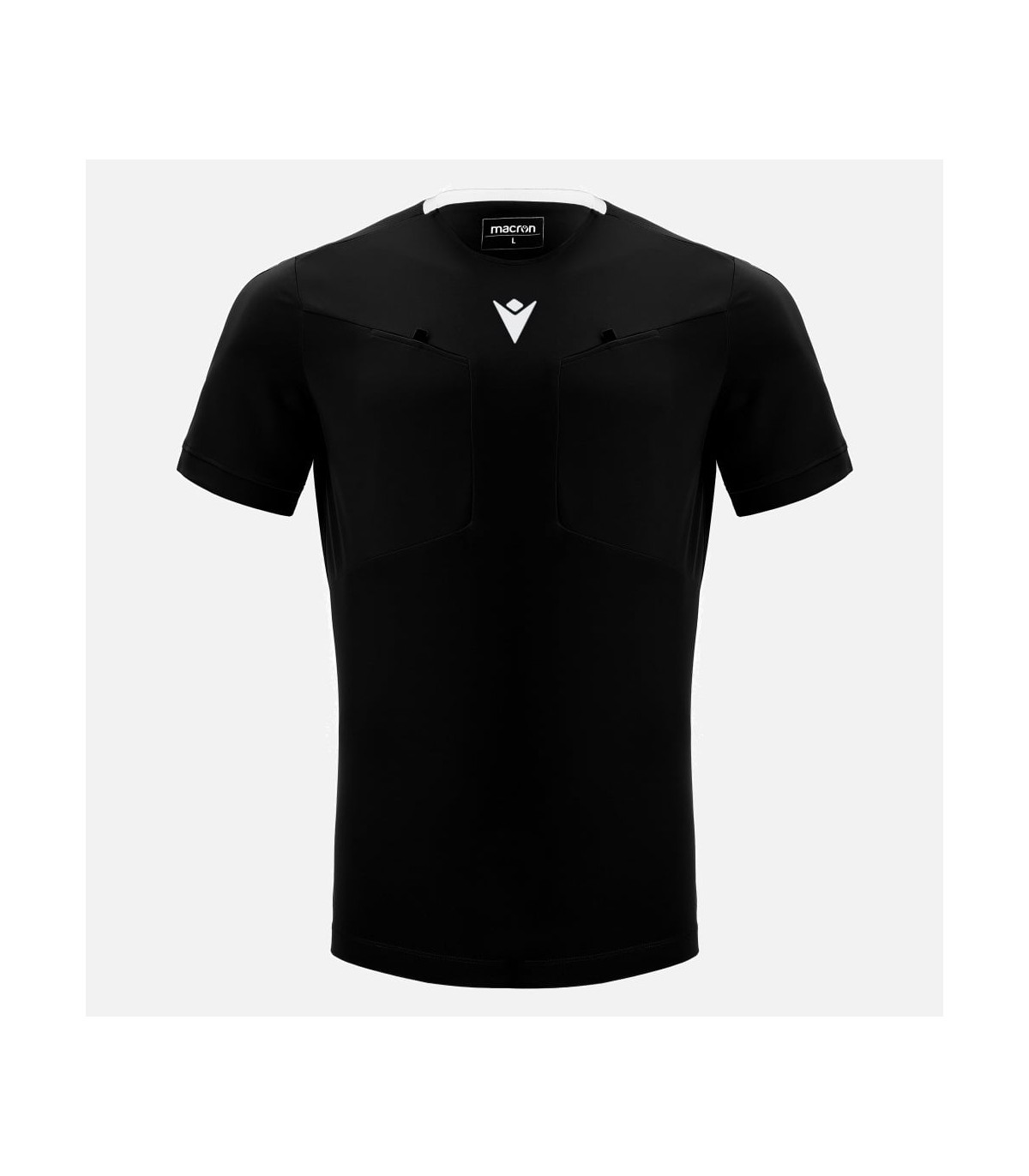 Referee shirt in Softlock made from 100% polyester. Crew neck with knitted back collar. Mesh inserts on shoulders to guarantee garment breathability. The double front pocket with velcro closure and ergonomic shape facilitates card storage and removal.