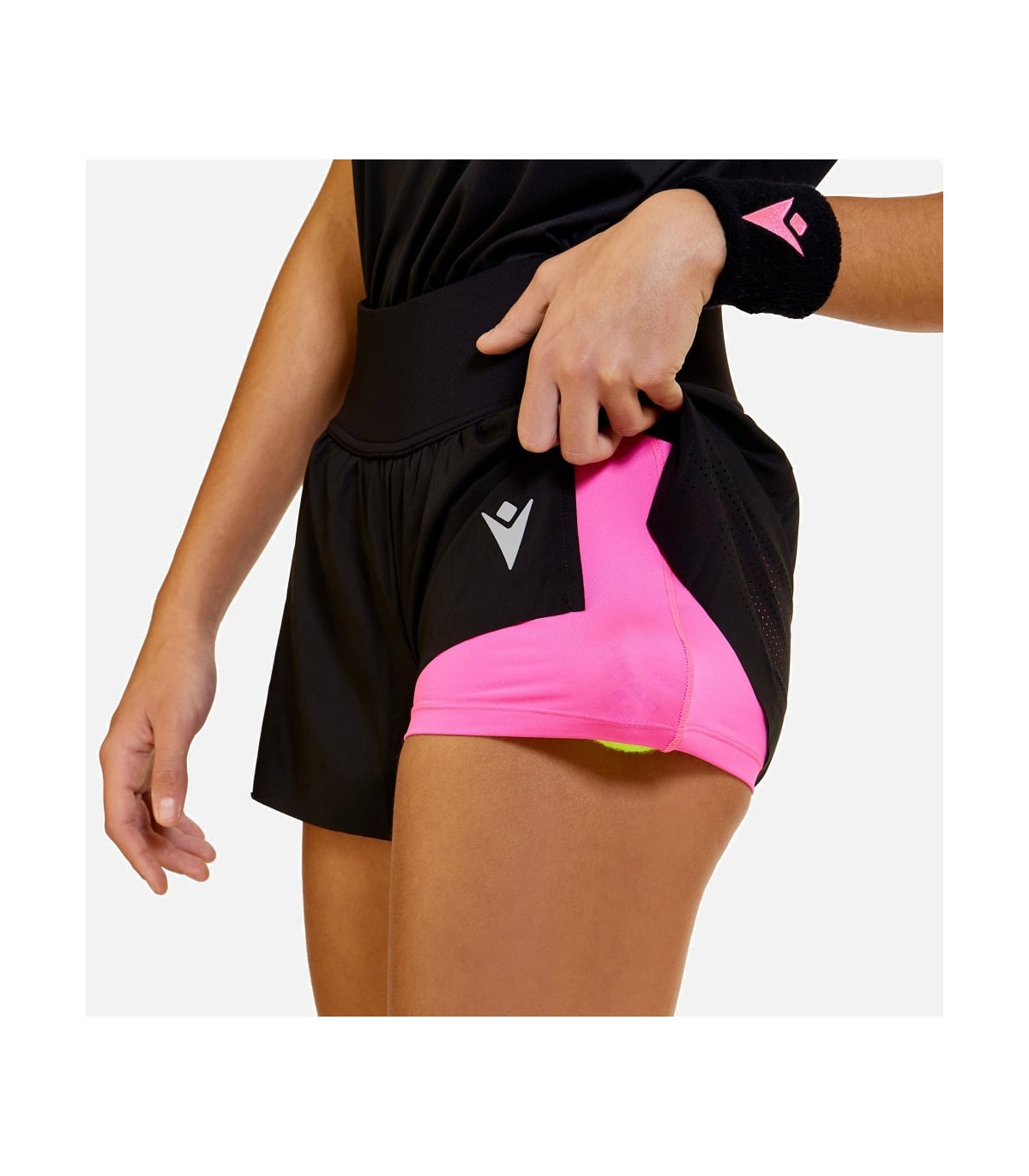 Le confort est une priorité absolue lorsqu'il s'agit de choisir un short de padel pour femme. Le nouveau modèle Cornelia est le mélange parfait entre contenu technique et style. Doté d'une large ceinture en tissu extensible avec élastique intérieur et de fentes latérales à bords bruts, il est ultra doux et confortable. Ils comportent également un sous-short pour un ajustement amélioré et un soutien optimal pendant les mouvements. Disponible en noir et blanc.
