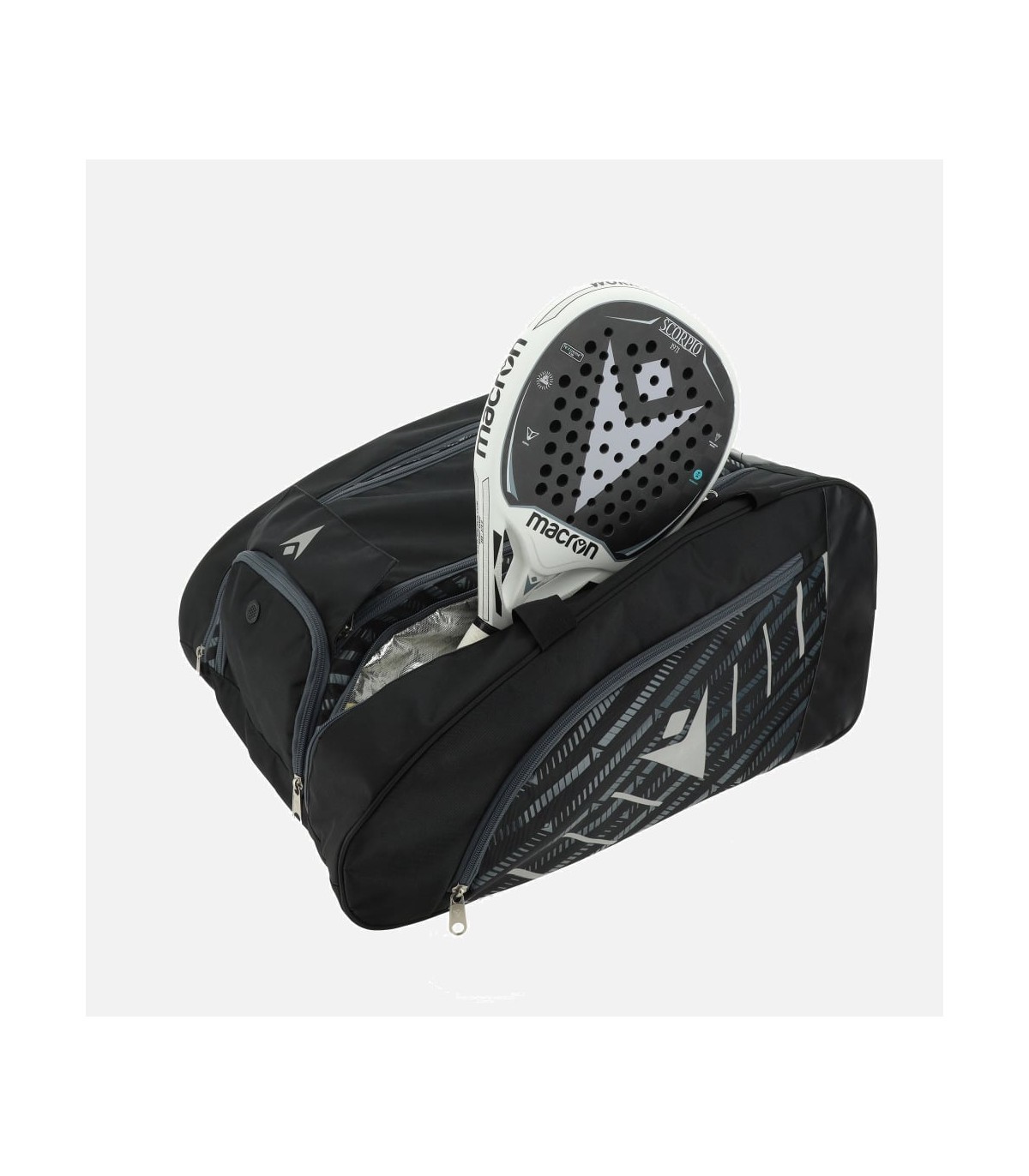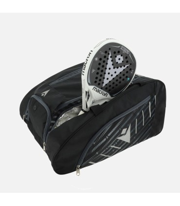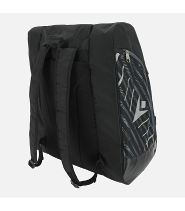 The Diaz padel bag features a roomy central compartment with double zip and velcro closure, plus a large upper shoe compartment complete with a metallic eyelet for enhanced ventilation. The side compartments are made of insulated material to help maintain racket performance even with hot or cold outdoor temperatures; they can accommodate up to 2 rackets. The base of the bag has a water-repellent coated material for ease of cleaning.