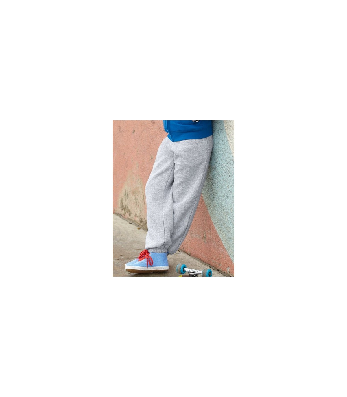 (Heather Grey : 260 g/m²). 80% katoen / 20% polyester. Elastische tailleband met aanrijgkoord rondom conform de EU-regelgeving voor kinderen. Zijzakken. Uiteinden met elastisch ribboord.