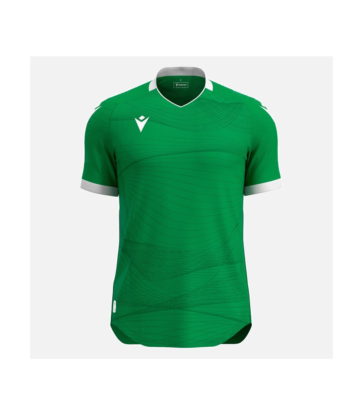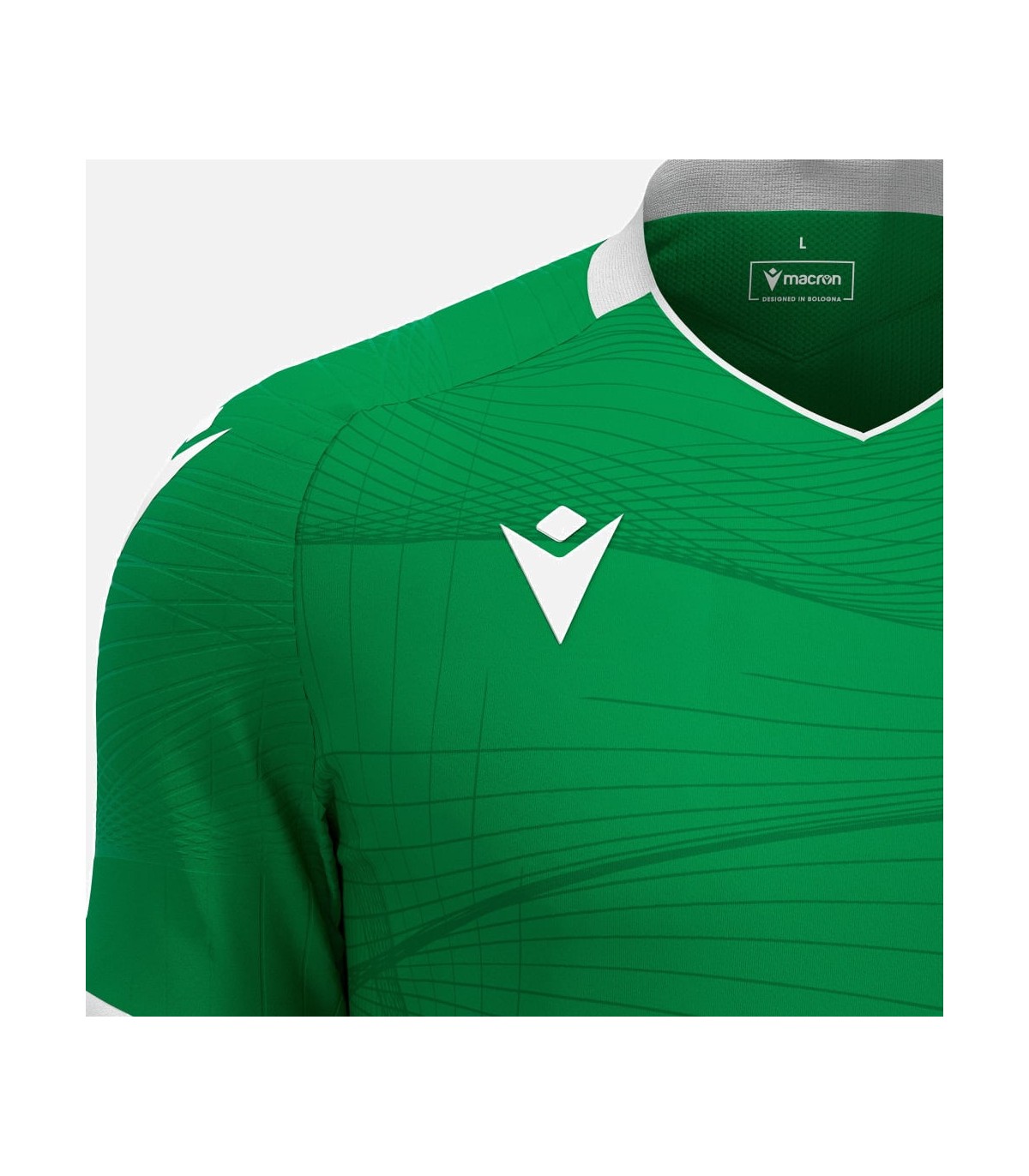 Wedstrijdshirt volledig gemaakt van Eco-Fabric, verkregen uit 100% gerecycled PET. De gebreide V-hals heeft een bies aan de voorzijde. Het shirt heeft een opvallende optische textuur in reliëf op de mouwen en een dye-sub-print op de voorkant. Het Macron Hero-logo staat in siliconen op de voorkant. De achterkant van Eco-micromesh garandeert een uitstekend ademend vermogen. Verkrijgbaar in 14 kleurenversies.