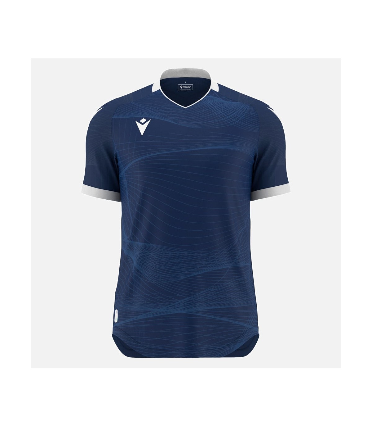 Wedstrijdshirt volledig gemaakt van Eco-Fabric, verkregen uit 100% gerecycled PET. De gebreide V-hals heeft een bies aan de voorzijde. Het shirt heeft een opvallende optische textuur in reliëf op de mouwen en een dye-sub-print op de voorkant. Het Macron Hero-logo staat in siliconen op de voorkant. De achterkant van Eco-micromesh garandeert een uitstekend ademend vermogen. Verkrijgbaar in 14 kleurenversies.
