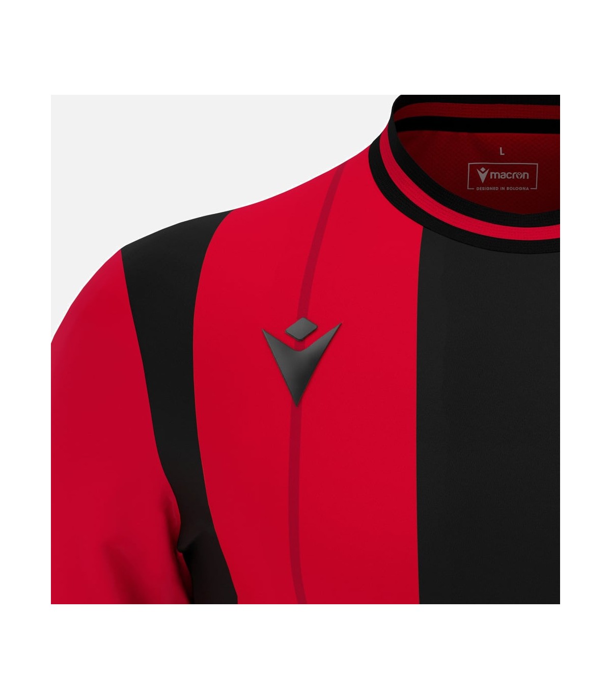 Match jersey met vijf verticale strepen volledig gemaakt van Eco-Fabric-stof, 100% van gerecycled PET. De ronde hals is gebreid. Aan de achterkant zijn de banden onderbroken om het afdrukken van namen en nummers mogelijk te maken en een goede zichtbaarheid te garanderen. De voorkant is voorzien van het Macron Hero-logo in siliconen en de achterkant is van Eco-micromesh voor maximaal ademend vermogen. Verkrijgbaar in 8 kleuren.